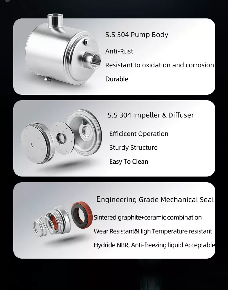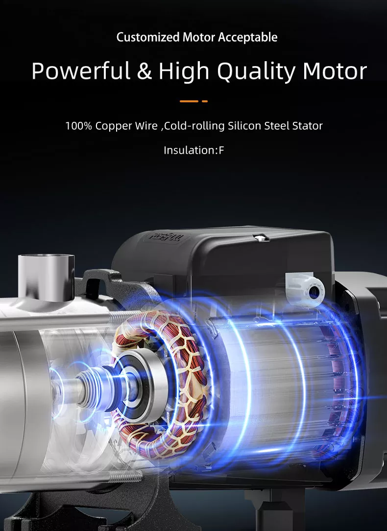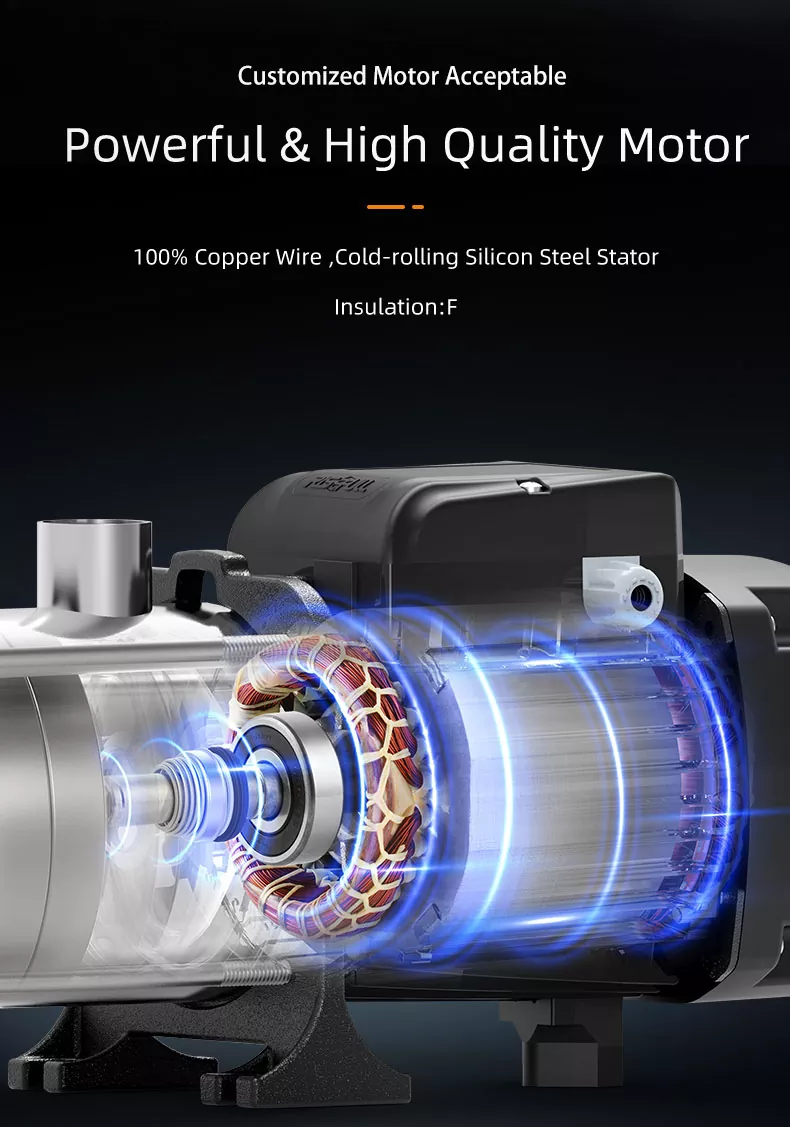 What sets our Smart Multistage Pressure Pump apart is its intelligent features that make operation a breeze. Thanks to its smart technology, you no need to adjust pressure levels.Say goodbye to complicated controls and manual adjustments – this pump takes the guesswork out of pumping water and ensures optimal performance every time.