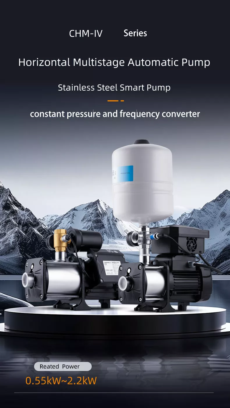 CHM8/IV series smart inverter series horizontal stainless steel multistage centrifugal pump is a relatively mature product on the market currently which is with compact structure and stable working, low operating noise, eiciency up to 44-70%. All water passing components are made of stainless steel AISI304 .It is widely used in