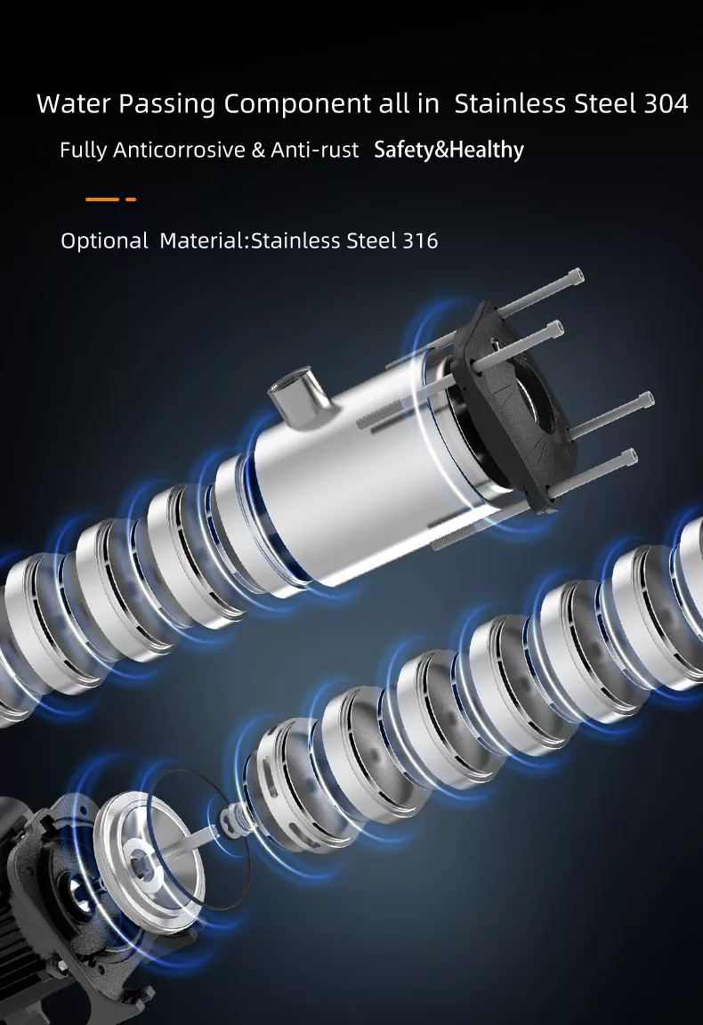 From water supply and pressure boosting to industrial cooling and circulation systems, our Stainless Steel horizontal Multistage Pump is versatile enough to handle a wide range of applications. Its multi-stage configuration allows for higher pressure capabilities, making it ideal for use in high-rise buildings and commercial facilities.