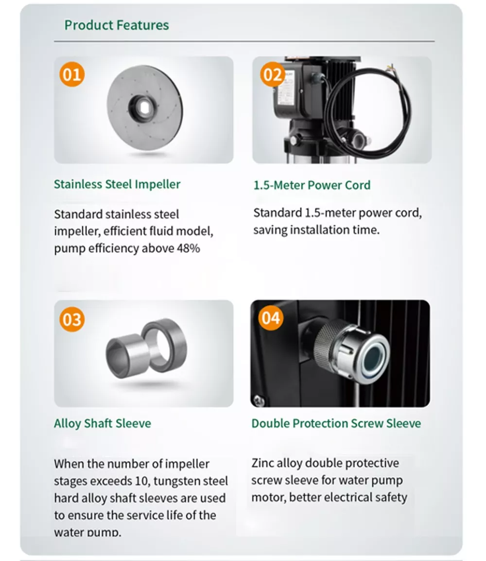 The following is an introduction of CPL Series .It is the vertical multistage centrifugal pump which is a new type of pump with a direct-connected design. comparing to the coupled-connected multistage water pump, it is with better cost effctive. Withstainless steel impellers and engineering PPO diffusers, basing onthe high efficient fluid model, the pump efficiency is above 48%
